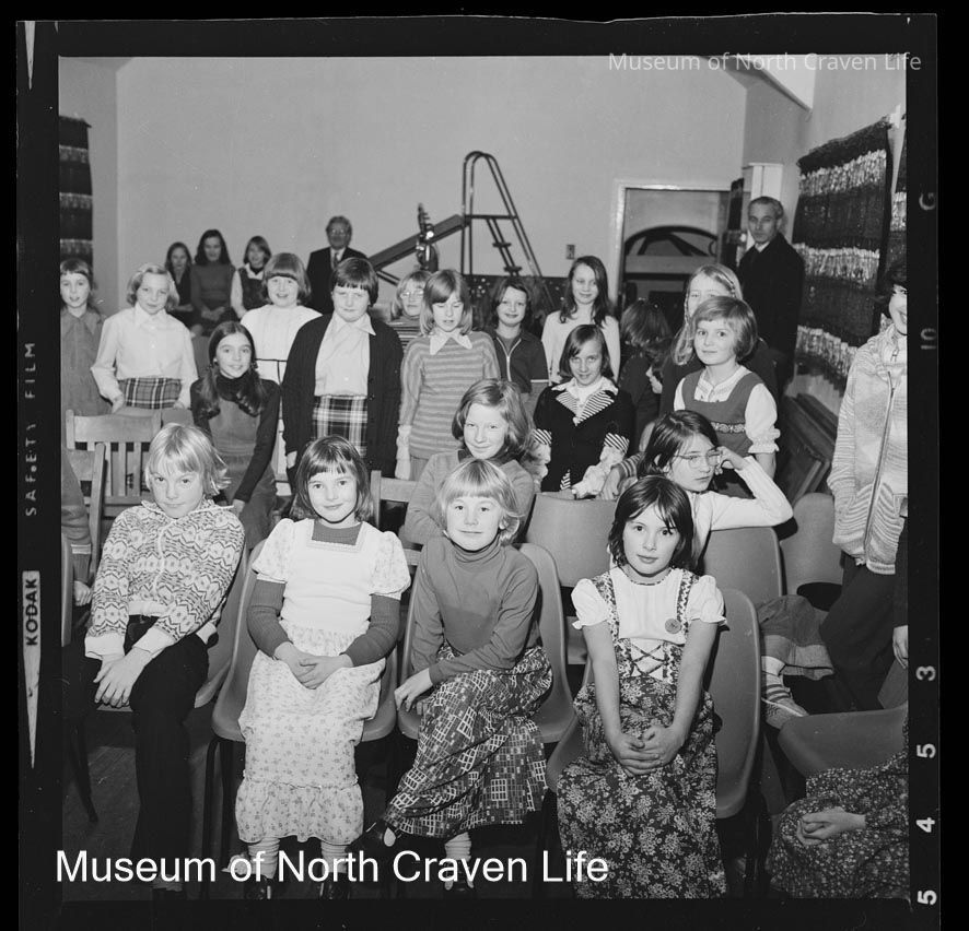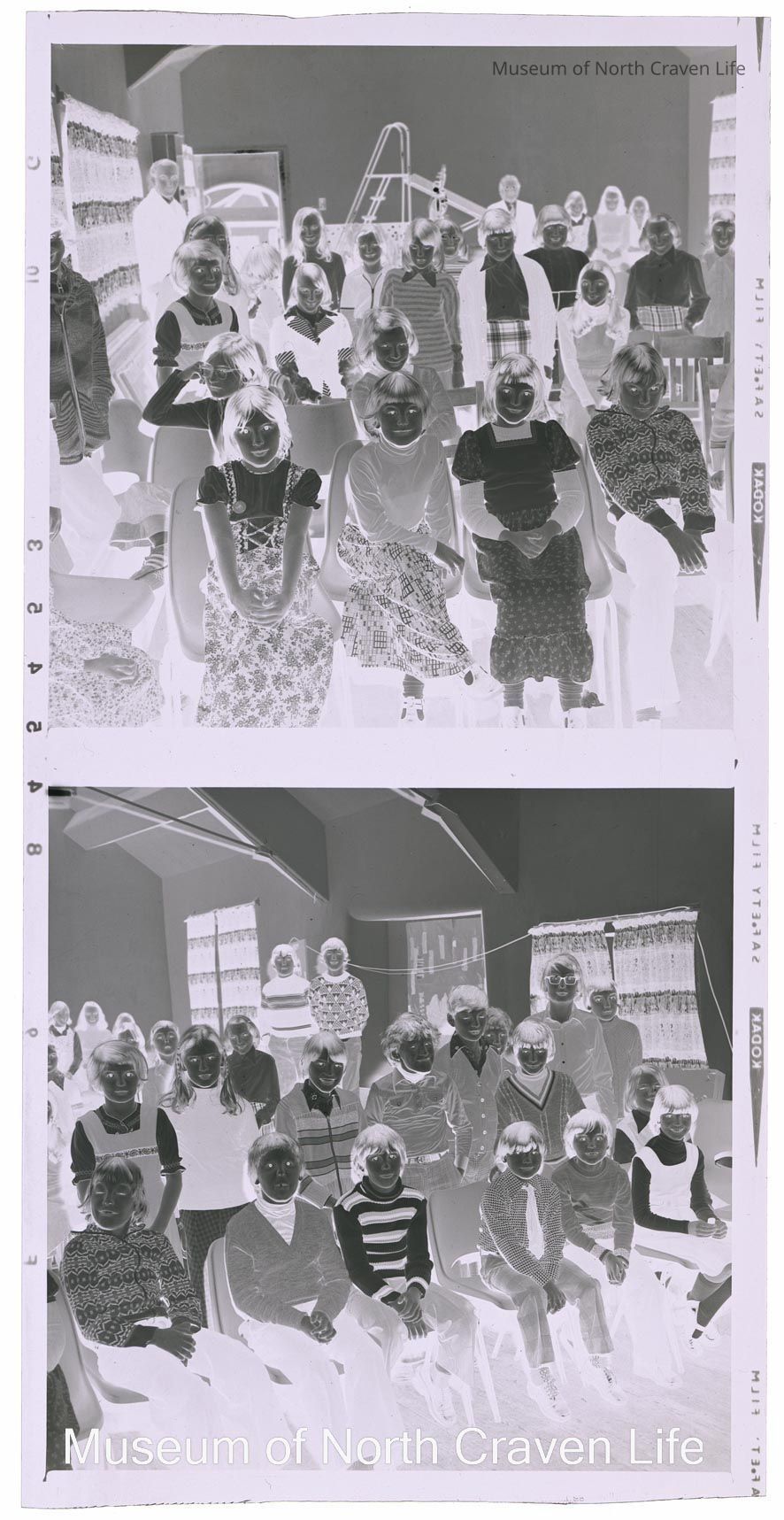 A 2¼" monochrome acetate film negative. A group portrait of children seated in a large roomCollection