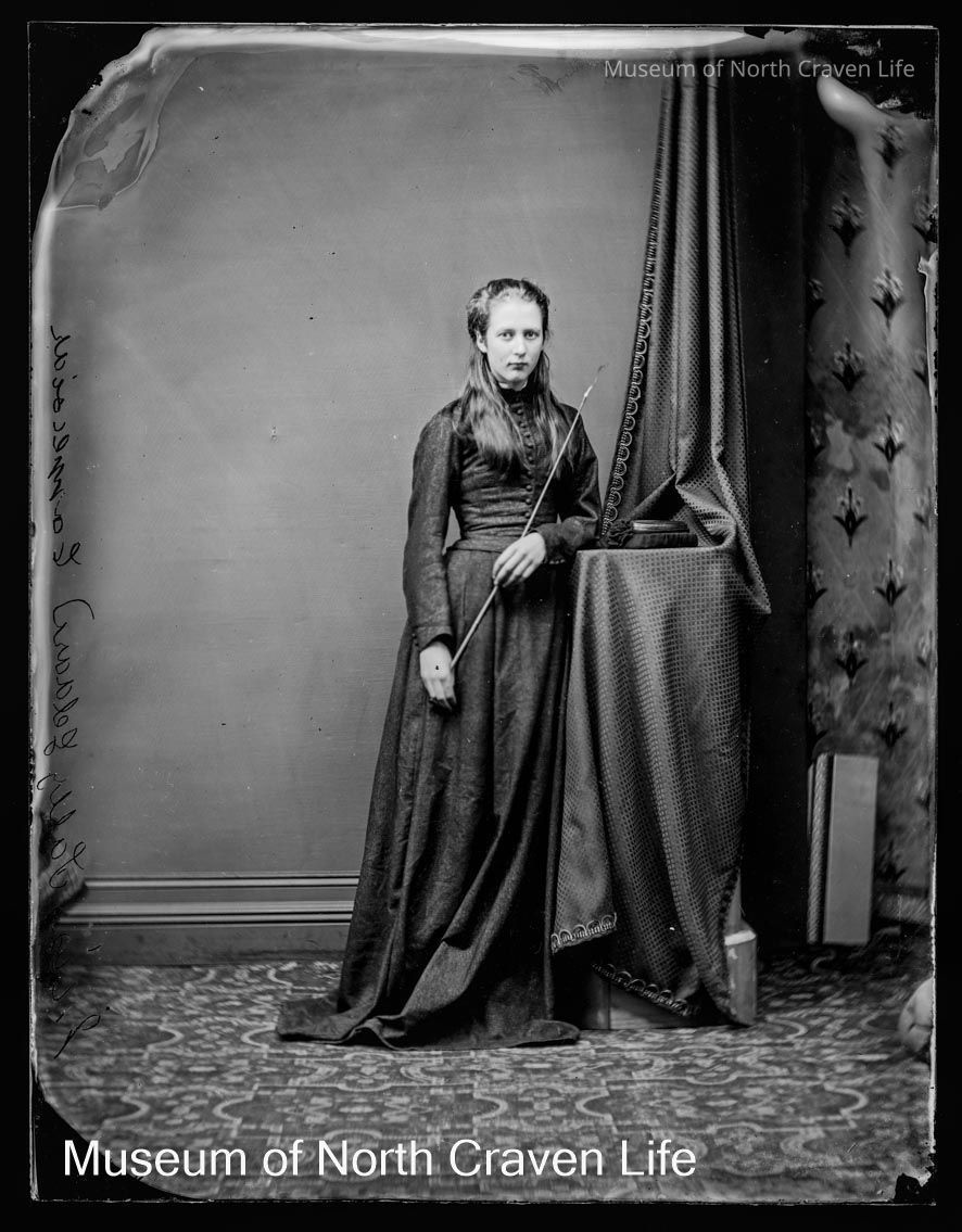 A quarter-plate wet collodion negative. A full length studio portrait of Miss Sally Geldard, Cappleside, 1867Collection