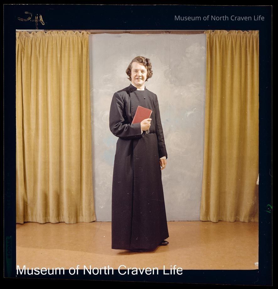 A 2¼" colour film negative. A portrait of a cleric standing, in clerical dress, holding a bookCollection