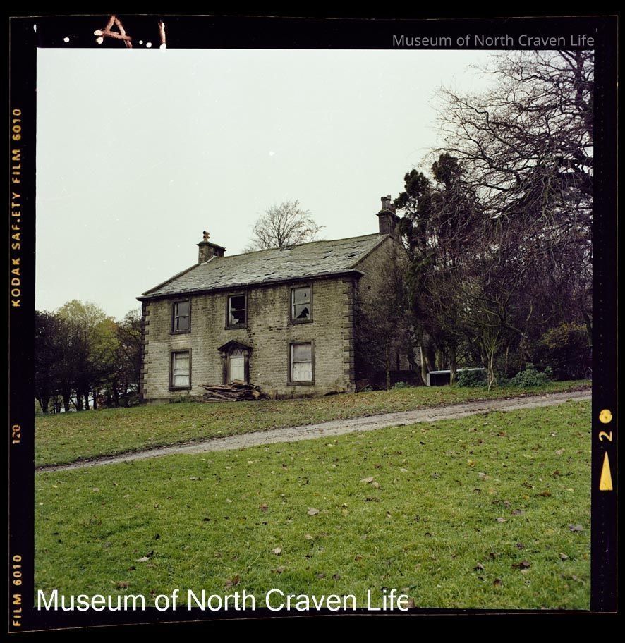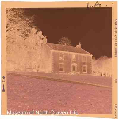 A 2¼" colour film negative. An image of the exterior of Mearbeck, Long Preston, viewed across open fields : front elevationCollection