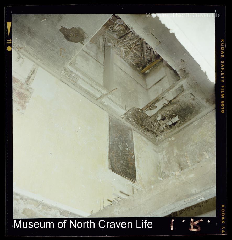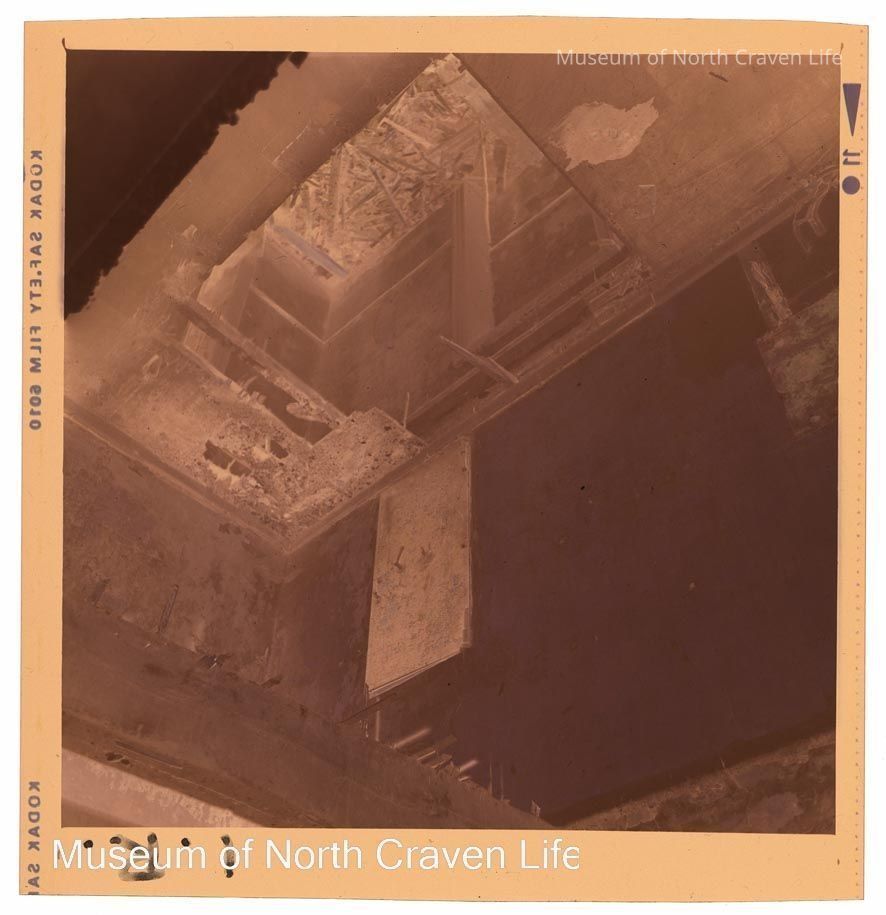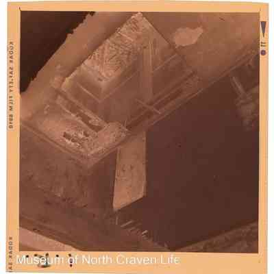 A 2¼" colour film negative. An image of the interior of Mearbeck, Long Preston : large square hole in floorCollection
