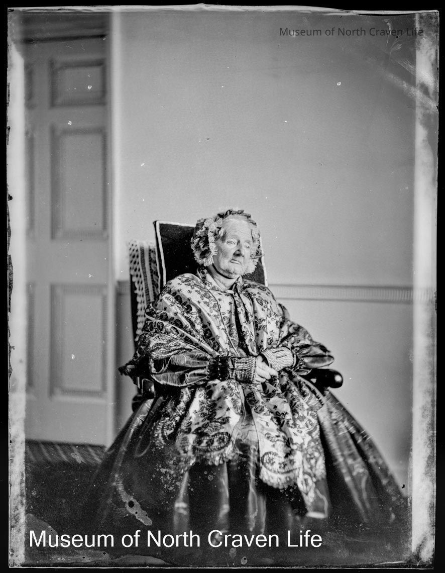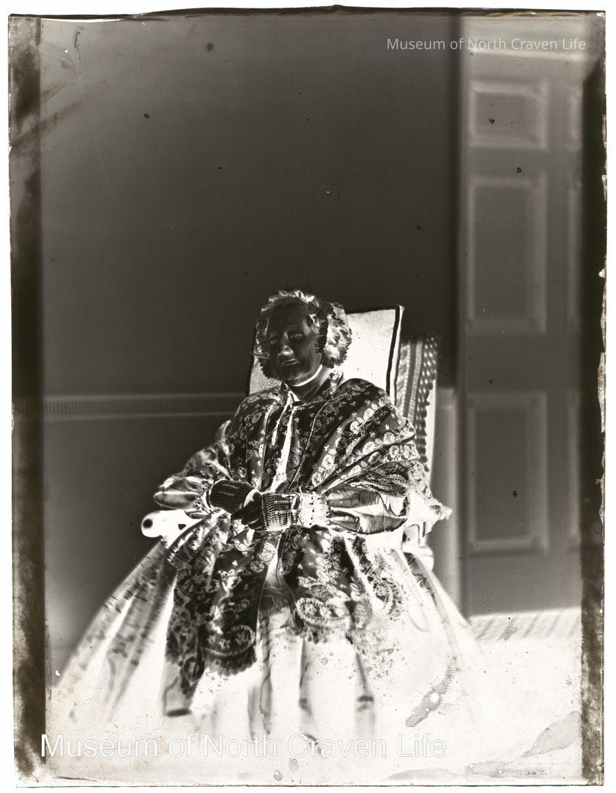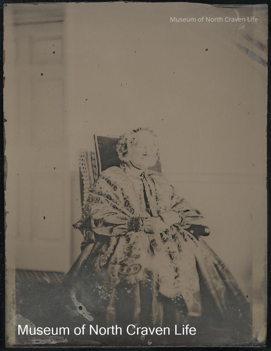A quarter-plate wet collodion negative. A full length seated studio portrait of Miss Dawson, Marshfield. Dated August 1866.Collection