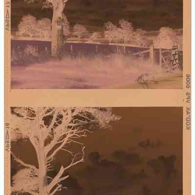 A 2¼" colour film negative. An image of the view from Mearbeck, Long Preston : gate, clouds and trees with hills in the distanceCollection