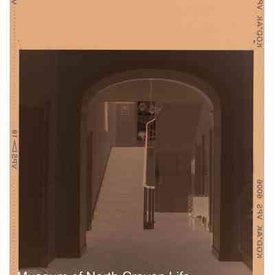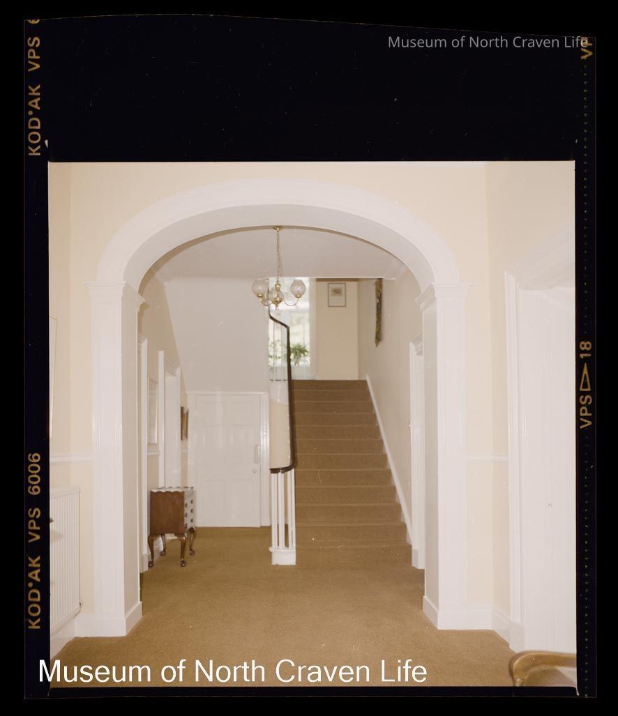 A 2¼" colour film negative. An image of the interior of Mearbeck, Long Preston : hallway with arched doorwayCollection