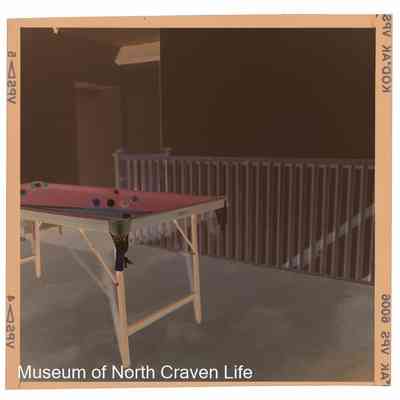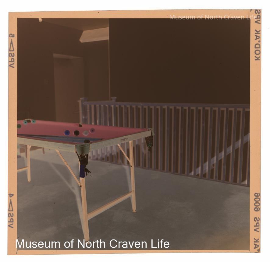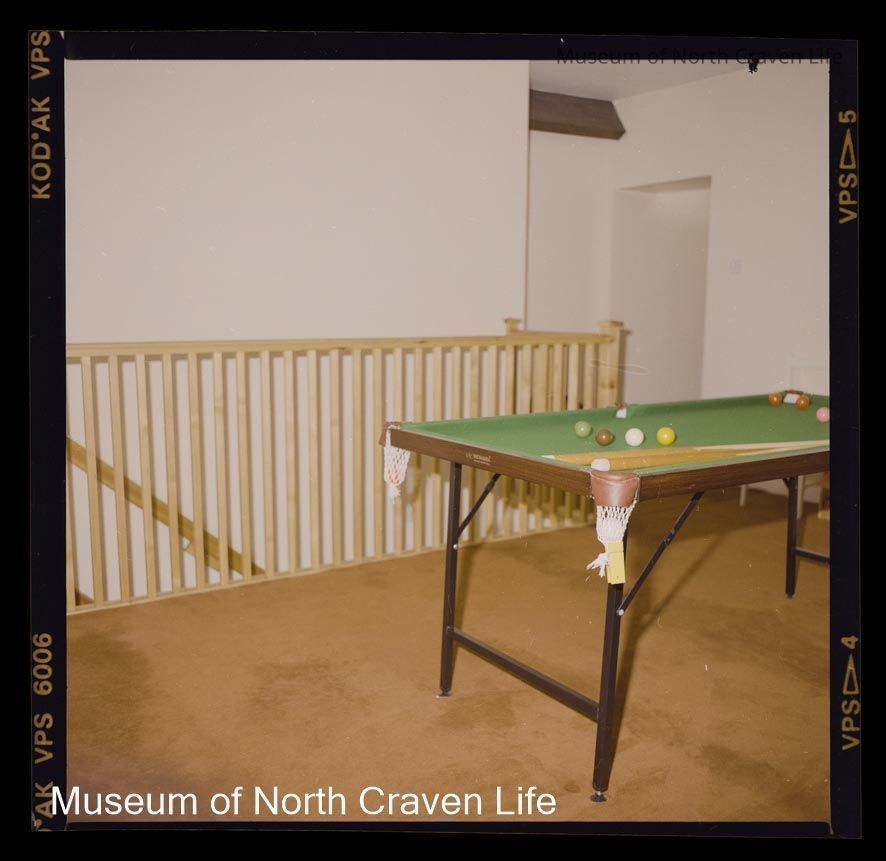A 2¼" colour film negative. An image of the interior of Mearbeck, Long Preston : landing with billiard tableCollection
