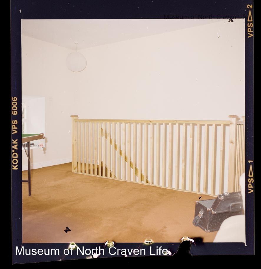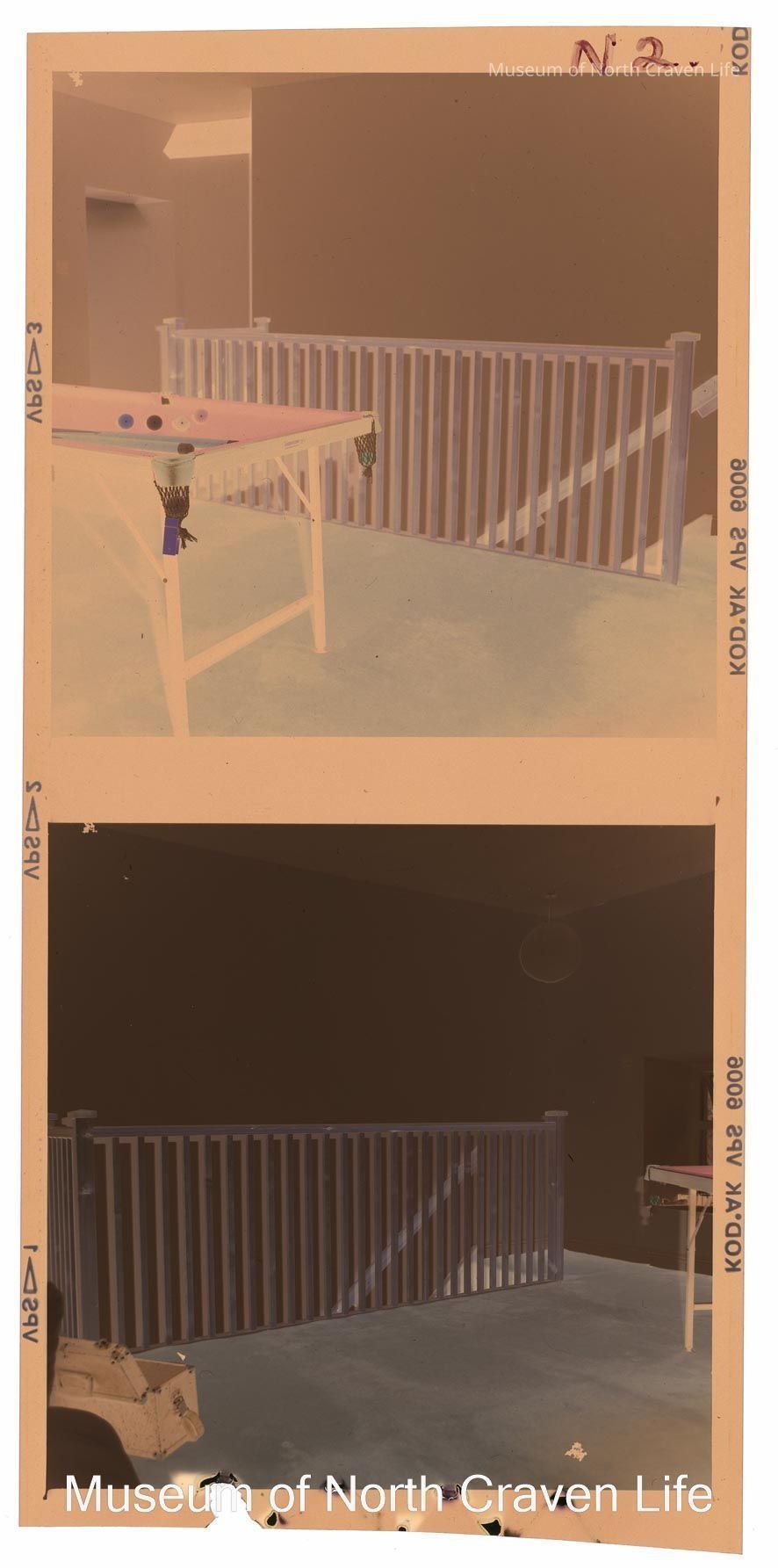 A 2¼" colour film negative. An image of the interior of Mearbeck, Long Preston : landing with billiard tableCollection