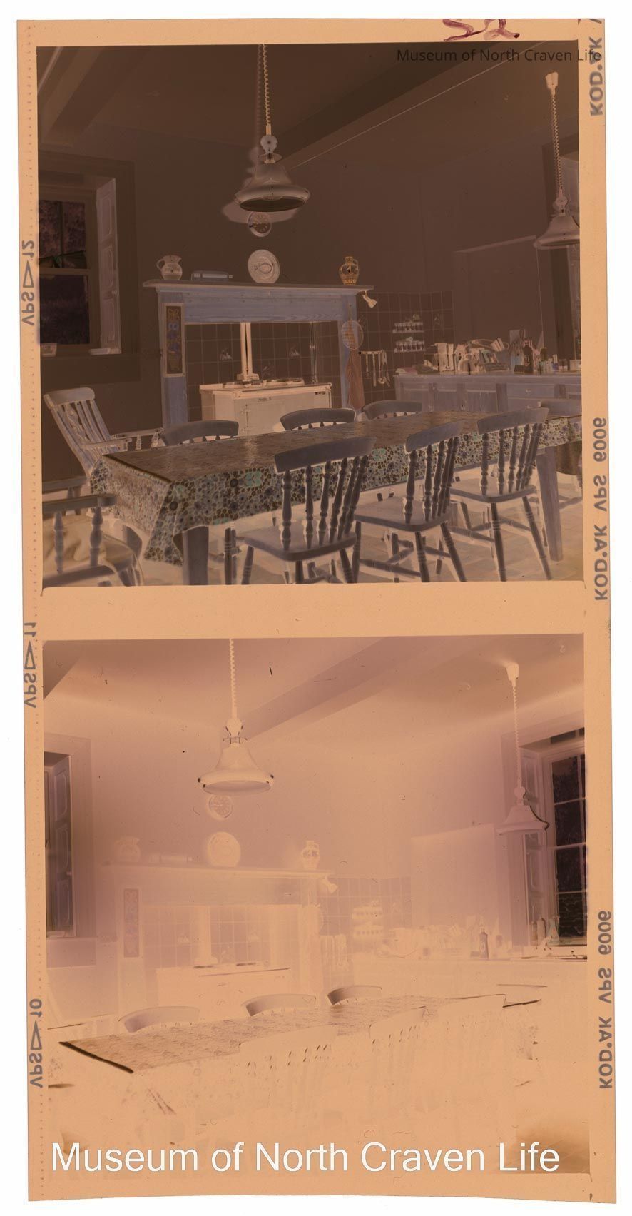 A 2¼" colour film negative. An image of the interior of Mearbeck, Long Preston : kitchen with dining tableCollection