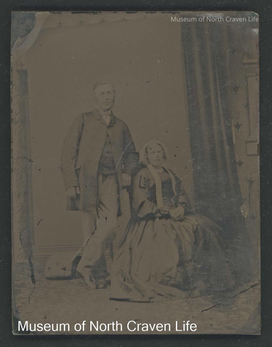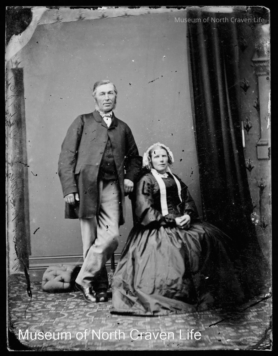 A quarter-plate wet collodion negative. A full length studio portrait of an unknown Lady and Gentleman. He is standing to the right of the seated lady, leaning on the chair backCollection