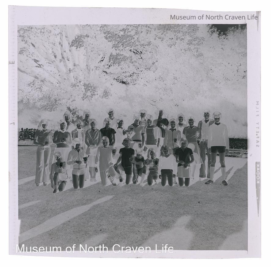 A 2¼" monochrome acetate film negative. A group portrait of children and young adults, standing or kneelingCollection