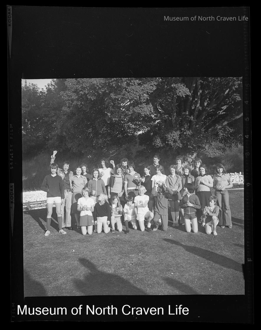 A 2¼" monochrome acetate film negative. A group portrait of children and young adults, standing or kneelingCollection