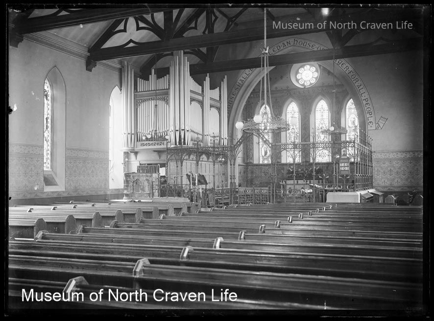 A half-plate gelatin silver glass negative. A view of the interior of the Parish church of Settle, Holy Ascension Church of England.Collection