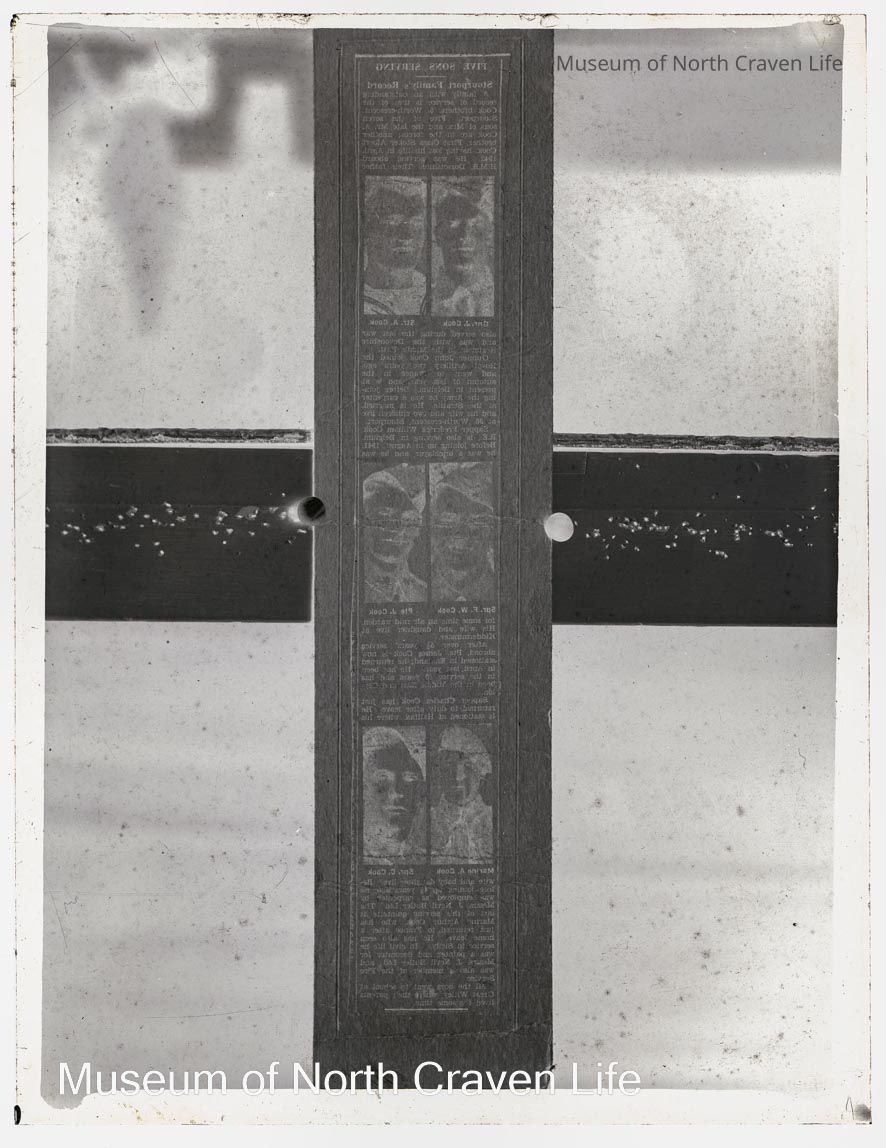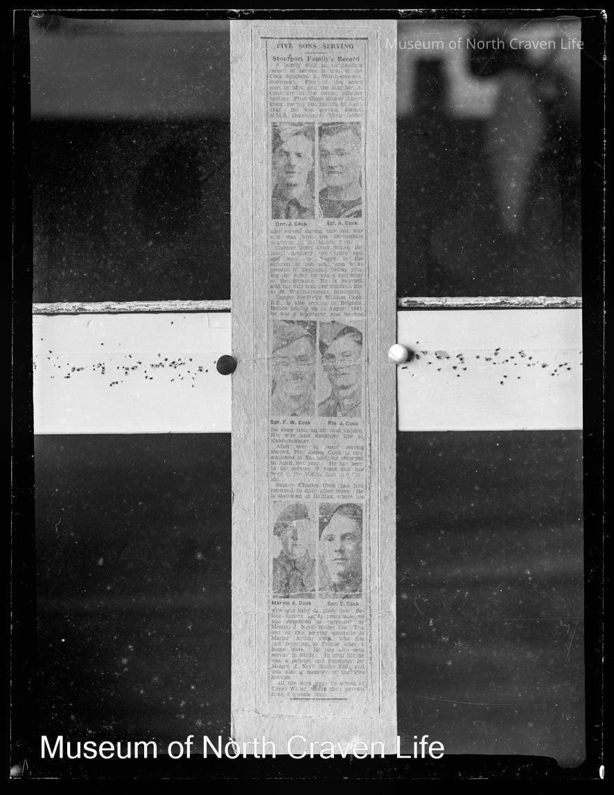 A quarter-plate gelatin silver glass negative. An image of a newspaper cutting providing biographies with pictures of servicemen from one family in StourportCollection