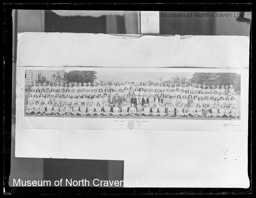 A quarter-plate gelatin silver glass negative. A group portrait of pupils and teachers for the year 1946Collection
