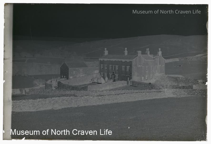 A half-plate gelatin silver glass negative. A view of Knight Stainforth Hall, a very substantial farmhouse and out-buildings, set in rolling countrysideCollection