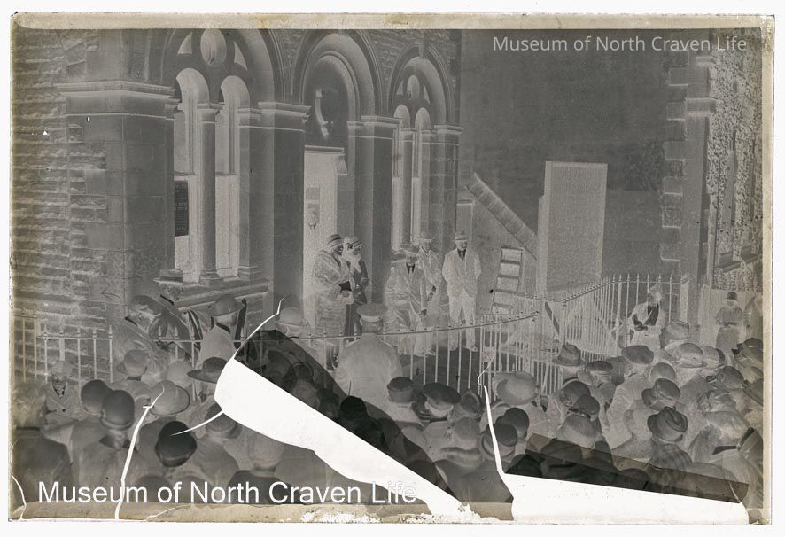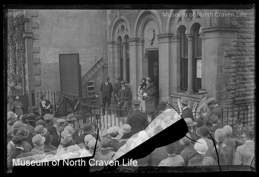 A half-plate gelatin silver glass negative. A view of the TSB in Settle and the Inauguration of the Memorial to Benjamin WaughCollection