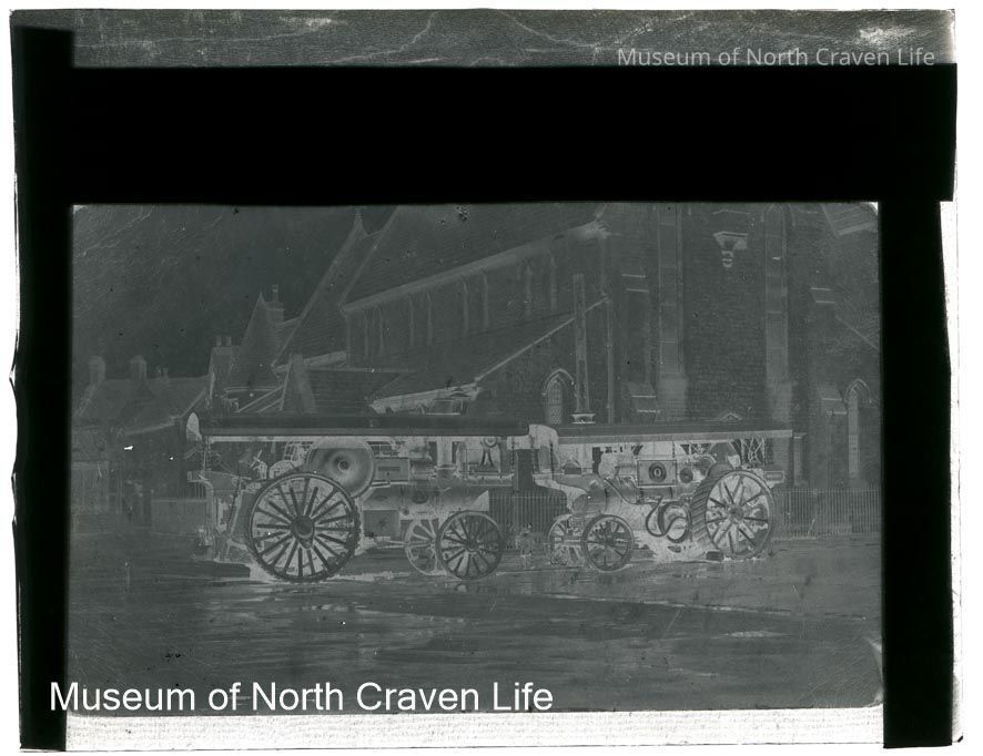 A 65 x 80mm b/w gelatin silver glass negative. A view of a very old steam tractorCollection