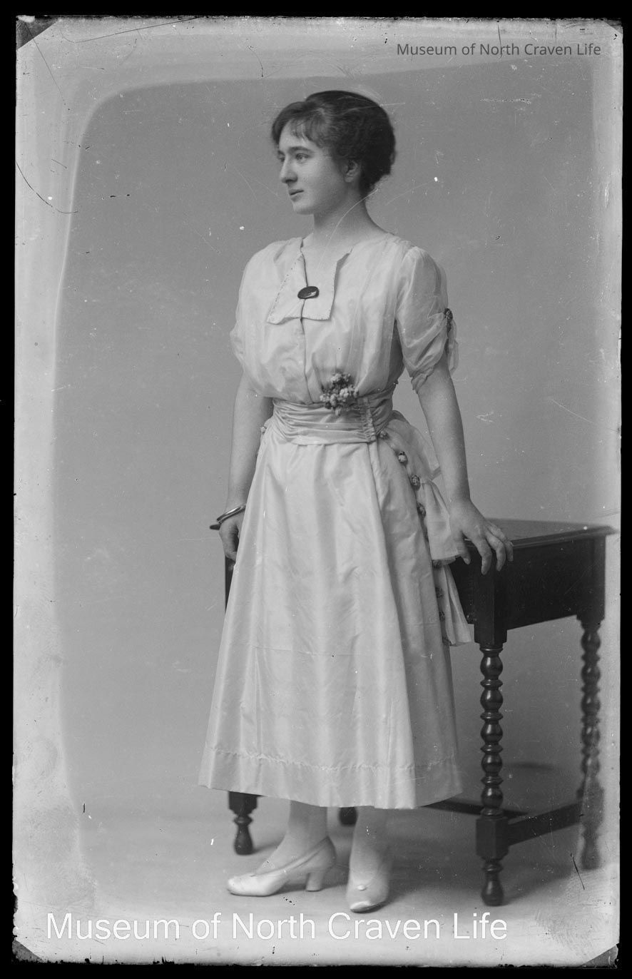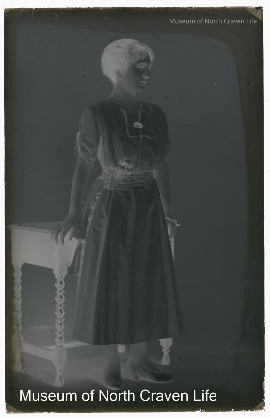 A gelatin silver glass negative. A portrait of a lady standing in front of a small tableCollection
