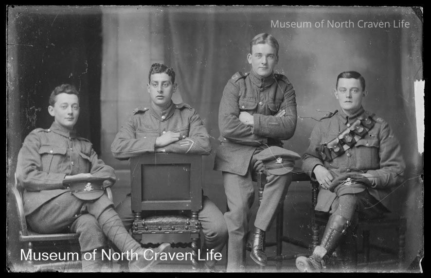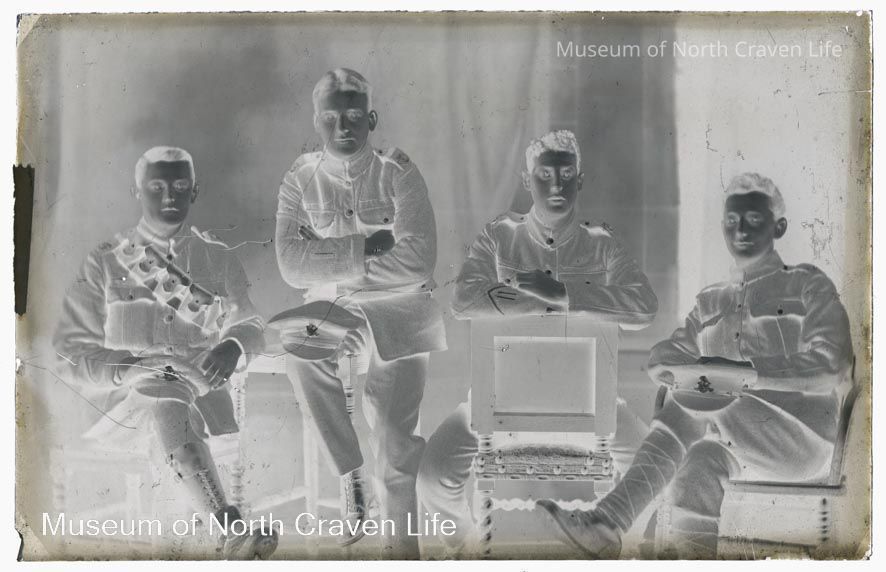 A gelatin silver glass negative. A portrait of four soldiers in uniform, seatedCollection