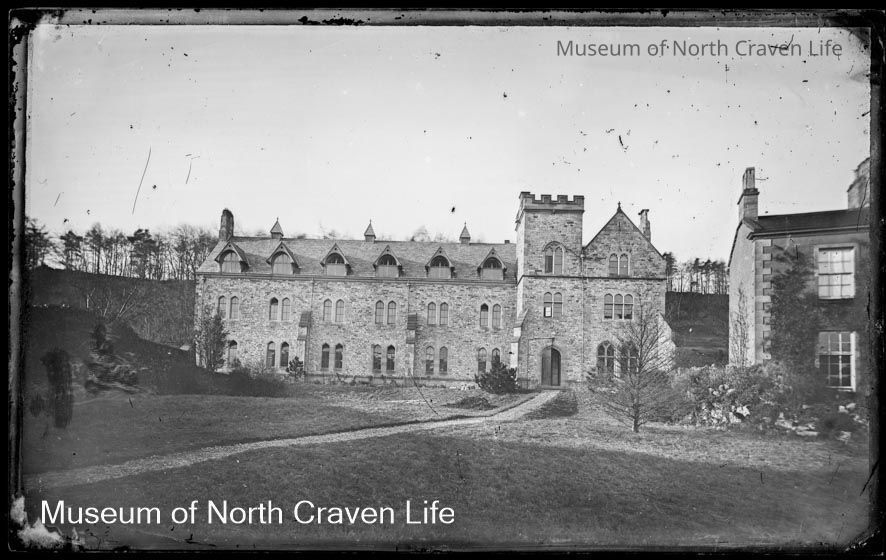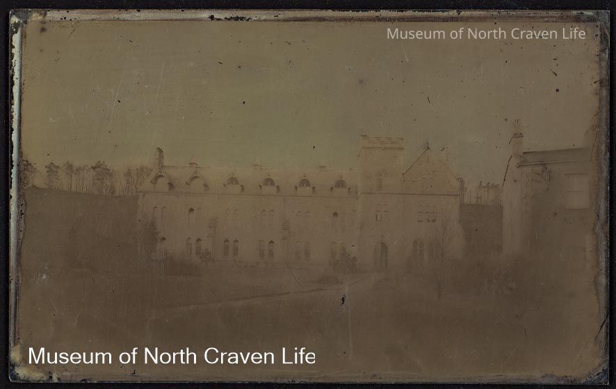 A wet plate collodion negative. A view of the facade of the main building and tower of Giggleswick School which is an independent day and boarding coeducational school in Giggleswick, near Settle. Established 1499Collection