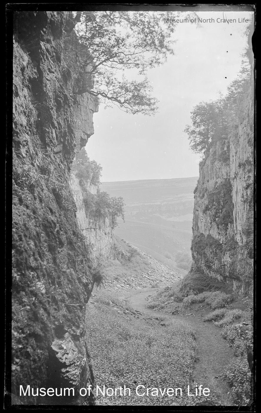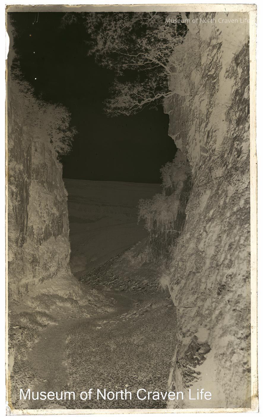 A wet plate collodion negative. A view down Trow Gill, a limestone gorge with cliffs over 200ft high that is located on the walking route from Clapham to Ingleborough. It is an example of a meltwater gorge formed over thousands of years by melting iceCollection