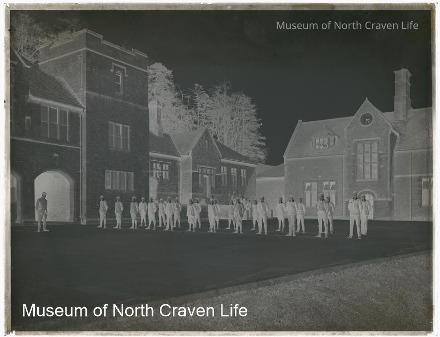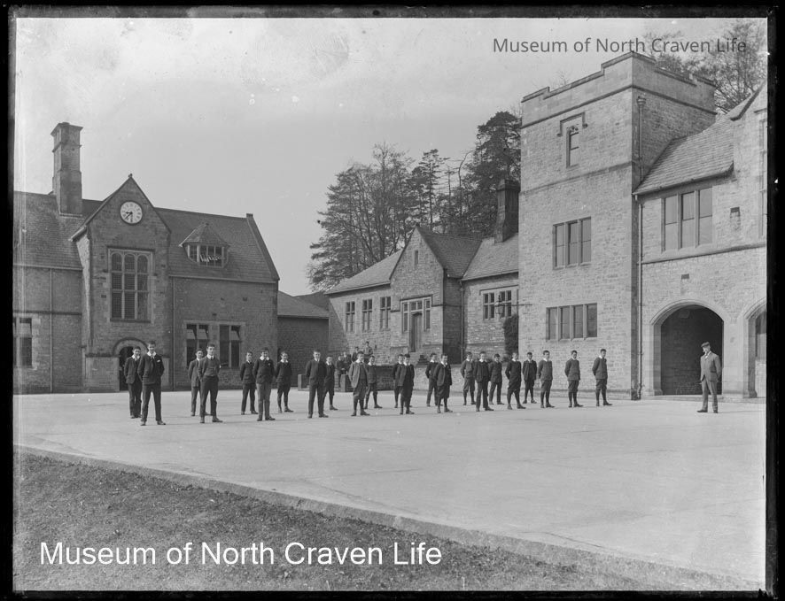 A full-plate gelatin silver glass negative. A group portrait of schoolboys lined up on a quadrangle at Giggleswick SchoolCollection