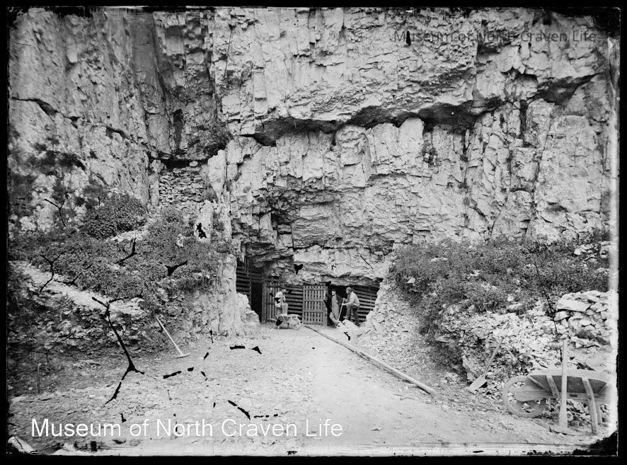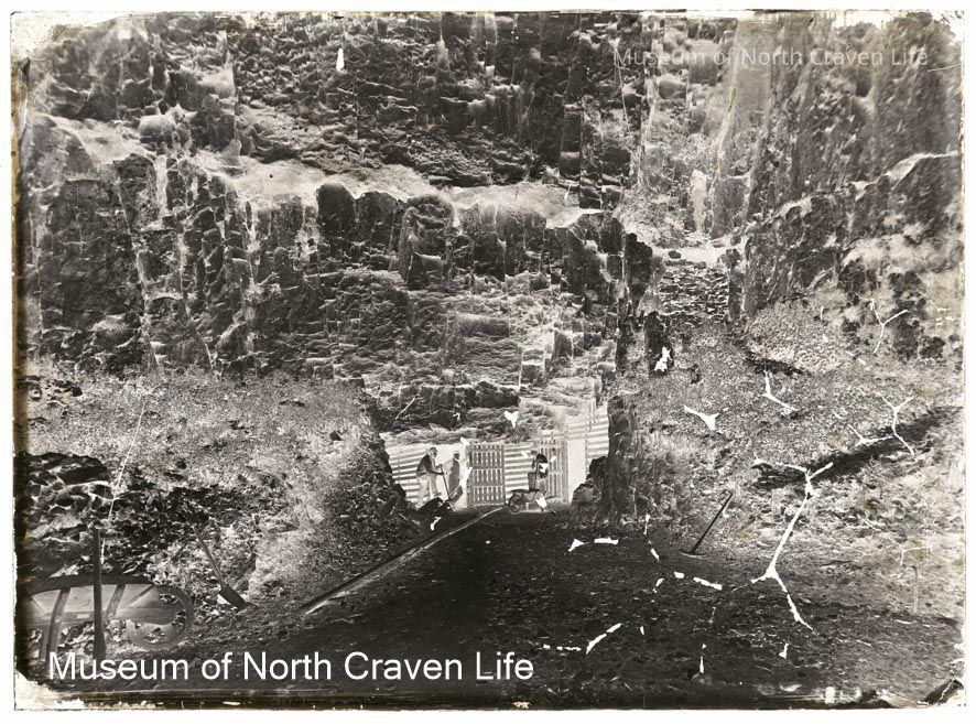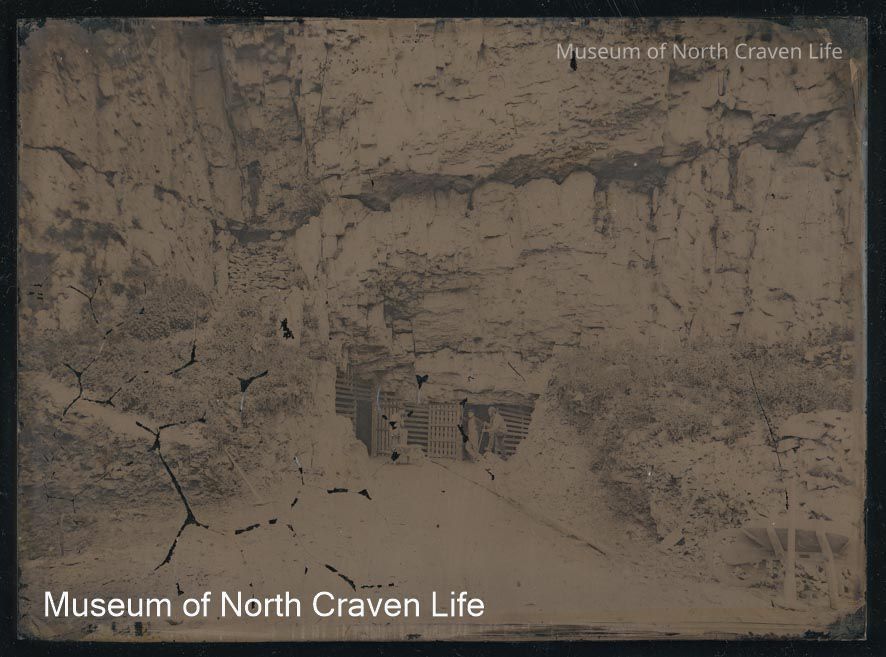 A half-plate wet collodion negative. A view of the entrance to Victoria Cave during excavations (c.1872)Collection