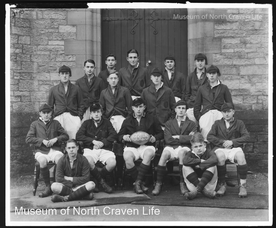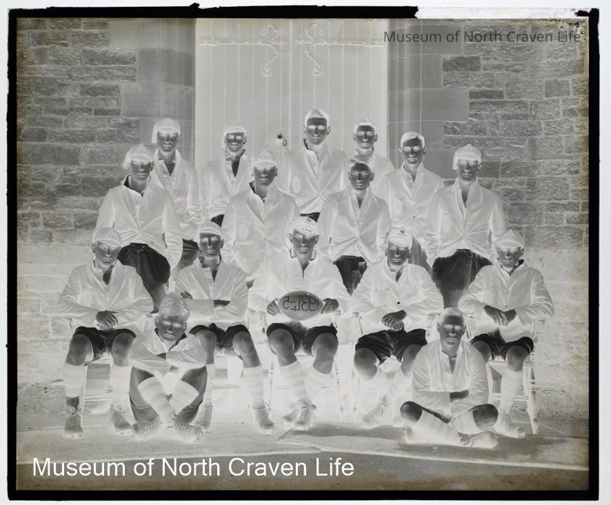 A gelatin silver glass plate negative. A group portrait of Giggleswick School Rugby Team 1934-35Collection