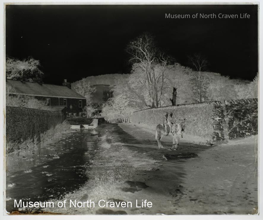 negative, glass plate - Tems Side, Giggleswick (Boys on Donkey)Entry/Object ID