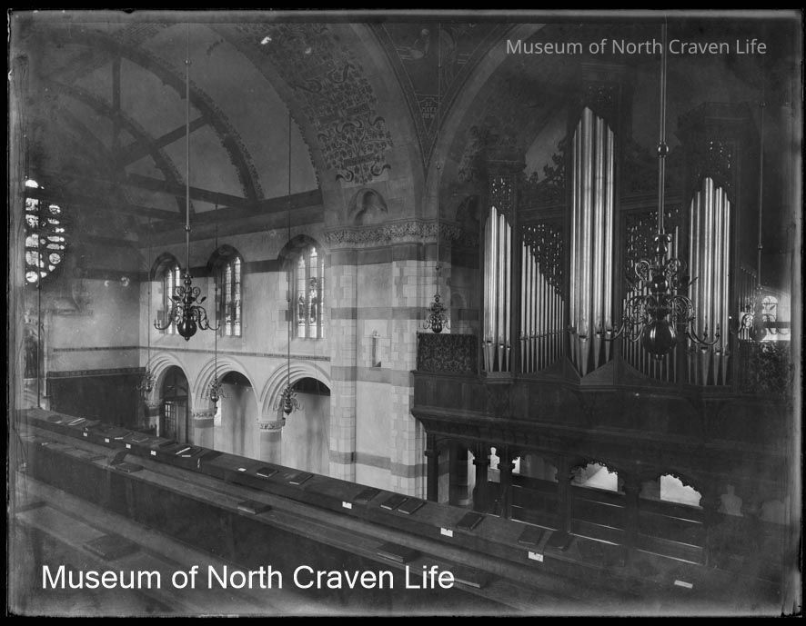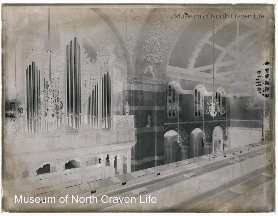 A half-plate gelatin silver glass negative. A view of the interior of Giggleswick School Chapel. The organ loft and pipes are visible on the rightCollection