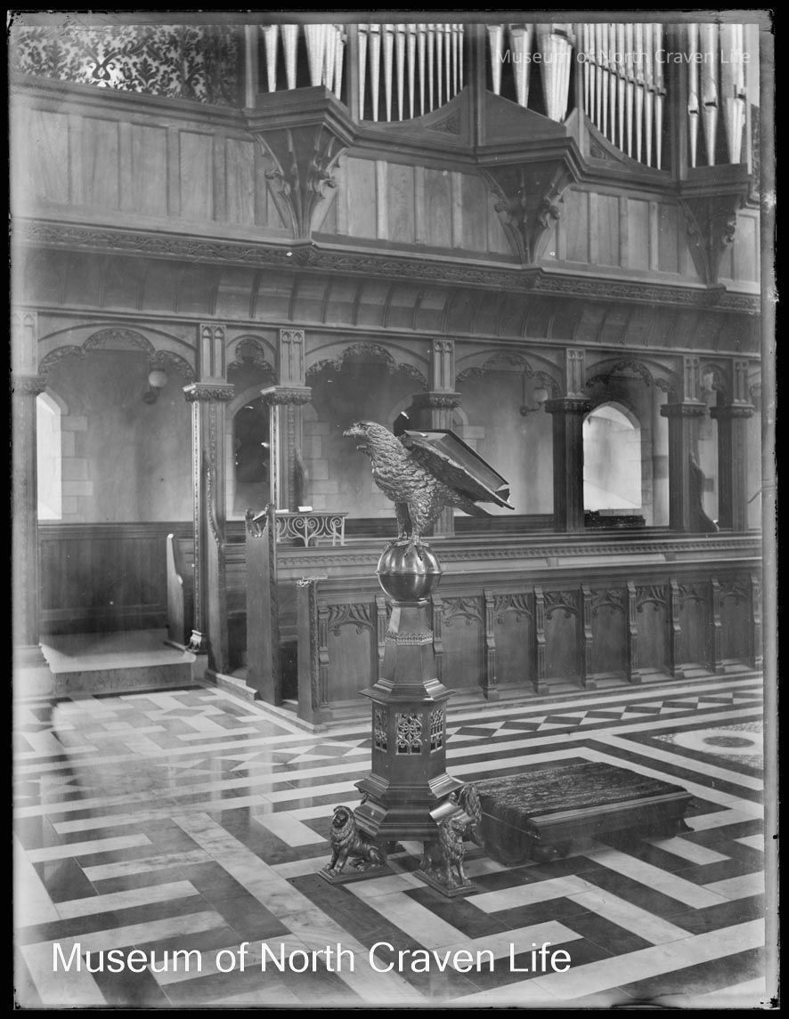 A half-plate gelatin silver glass negative. A view of the interior of Giggleswick School Chapel : the lectern and organ loftCollection