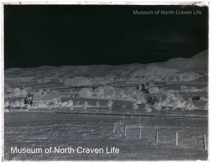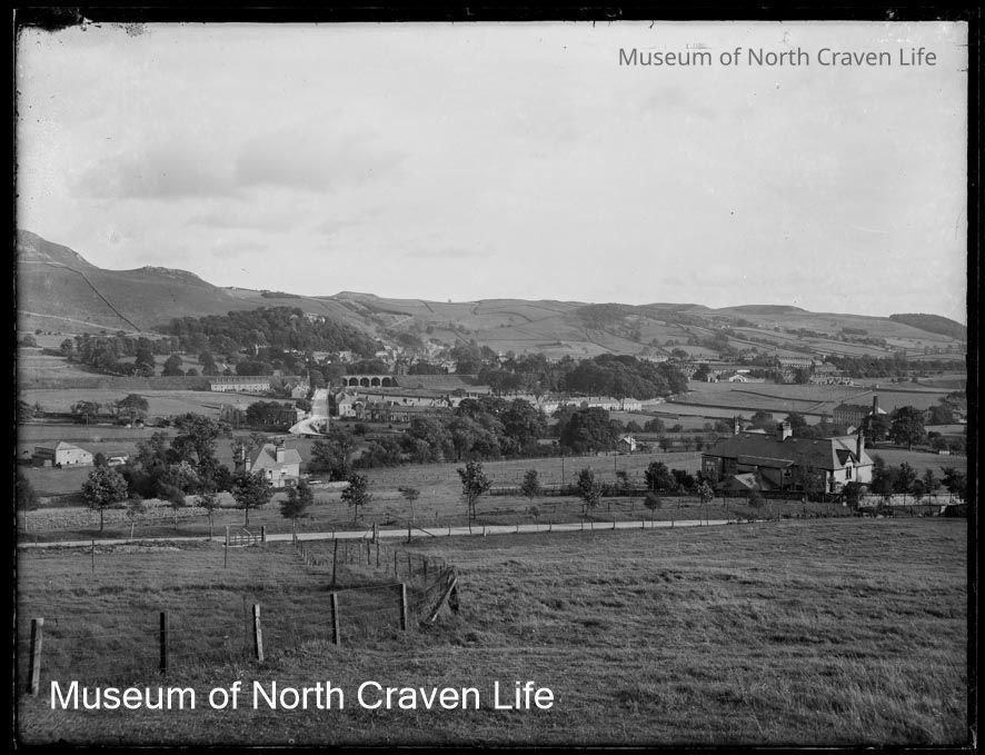 A full-plate gelatin silver glass negative. A view across open fields towards Settle. The railway viaduct appears in the backgroundCollection
