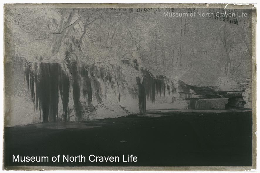 A half-plate gelatin silver glass negative. A view of Scaleber in the winter. Ice hangs from the vegetation on the banks of the beckCollection