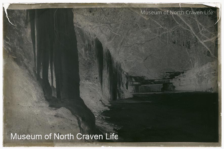 A half-plate gelatin silver glass negative. A view of Scaleber in the winter. Ice hangs from the vegetation on the banks of the beckCollection