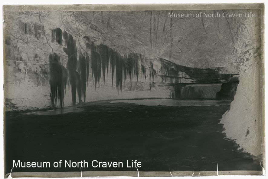 A half-plate gelatin silver glass negative. A view of Scaleber in the winter. Ice hangs from the vegetation on the banks of the beckCollection
