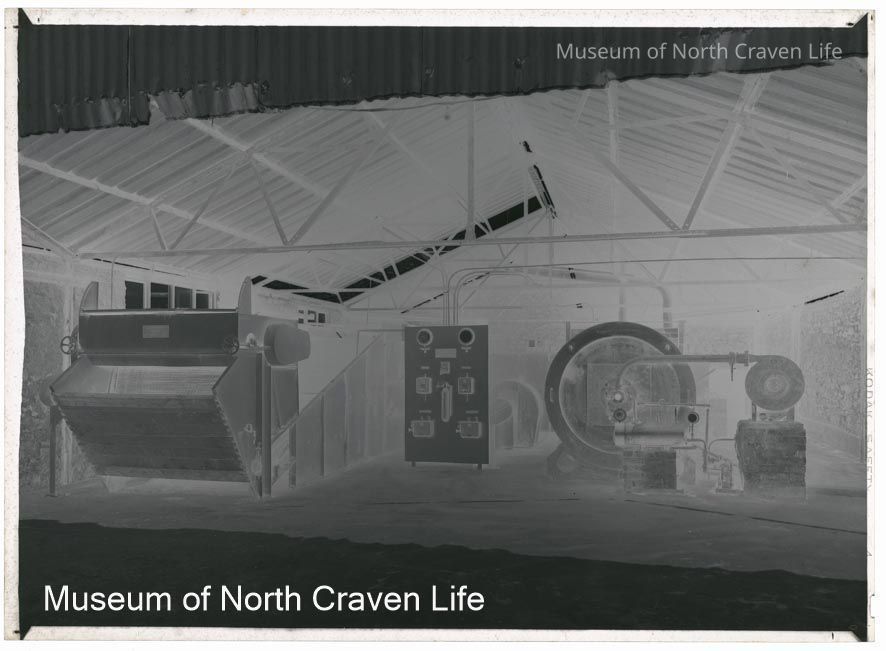 A half-plate gelatin silver film negative. A view of equipment belonging to the York Patent Steam Company which stands in an open shed with a corrugated roofCollection
