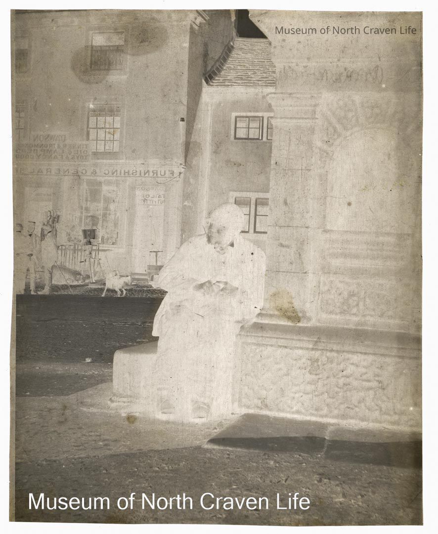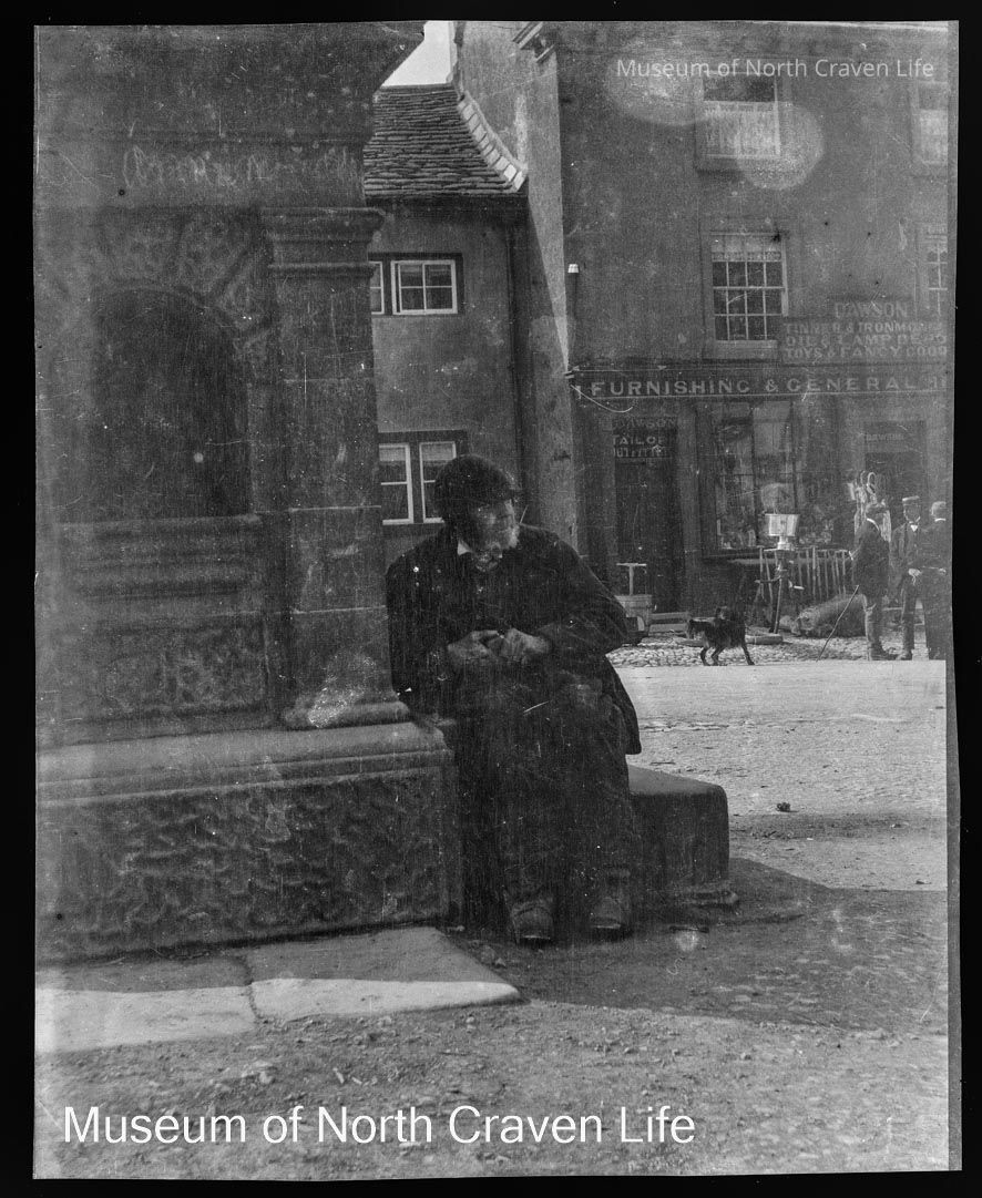 A quarter plate gelatin silver film negative. A portrait of Joseph Davidson Rowan ('Old Mick') on Settle Market fountainCollection