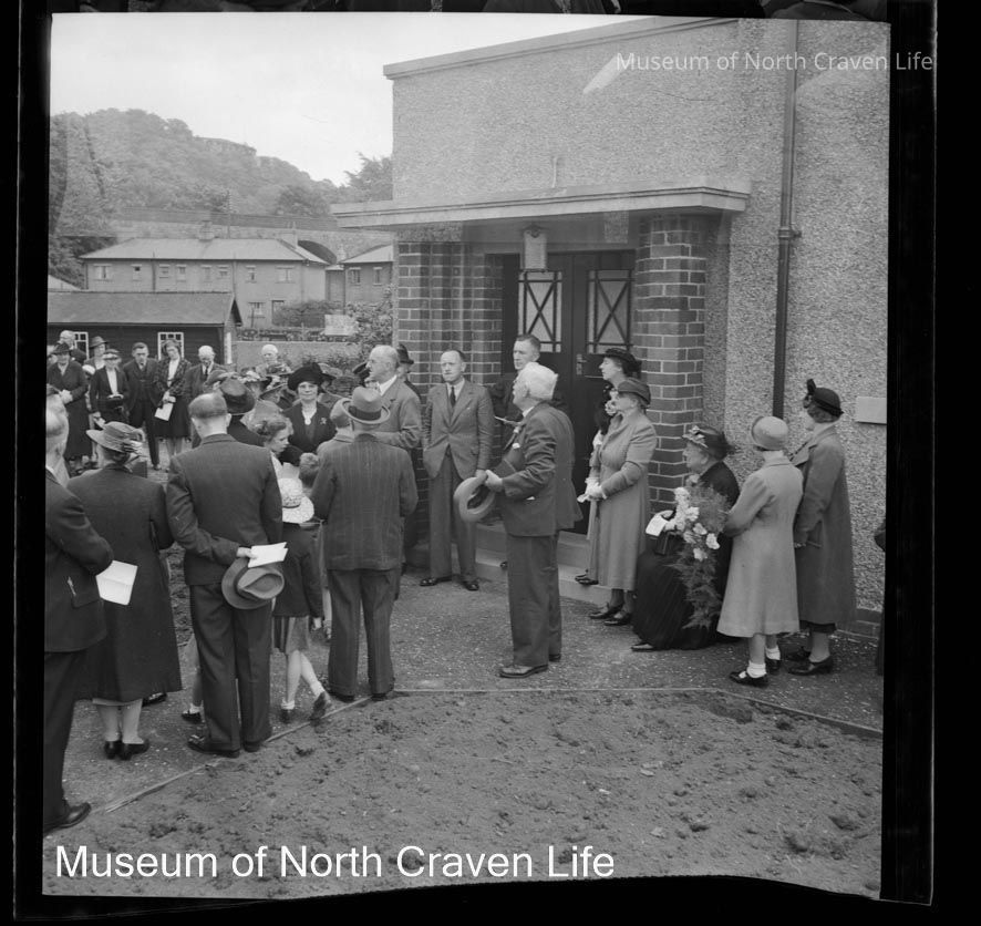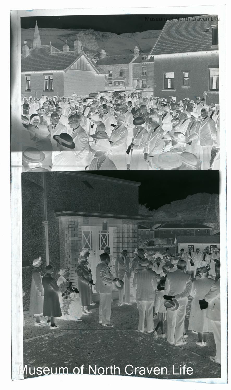 A gelatin silver film negative. Methodist Sunday School. A group of people stand in front of the entrance to a buildingCollection