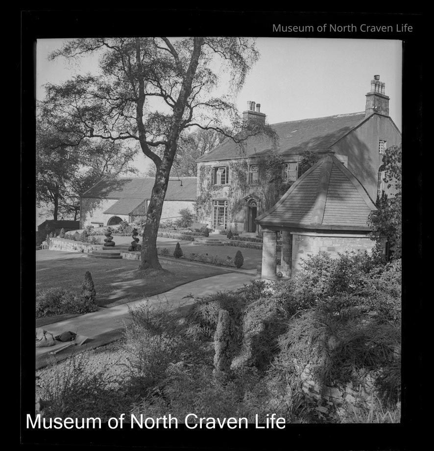 A gelatin silver acetate film negative. A view of the house seen from behind the summerhouse across the lawns. Garden tools appear in the foregroundCollection