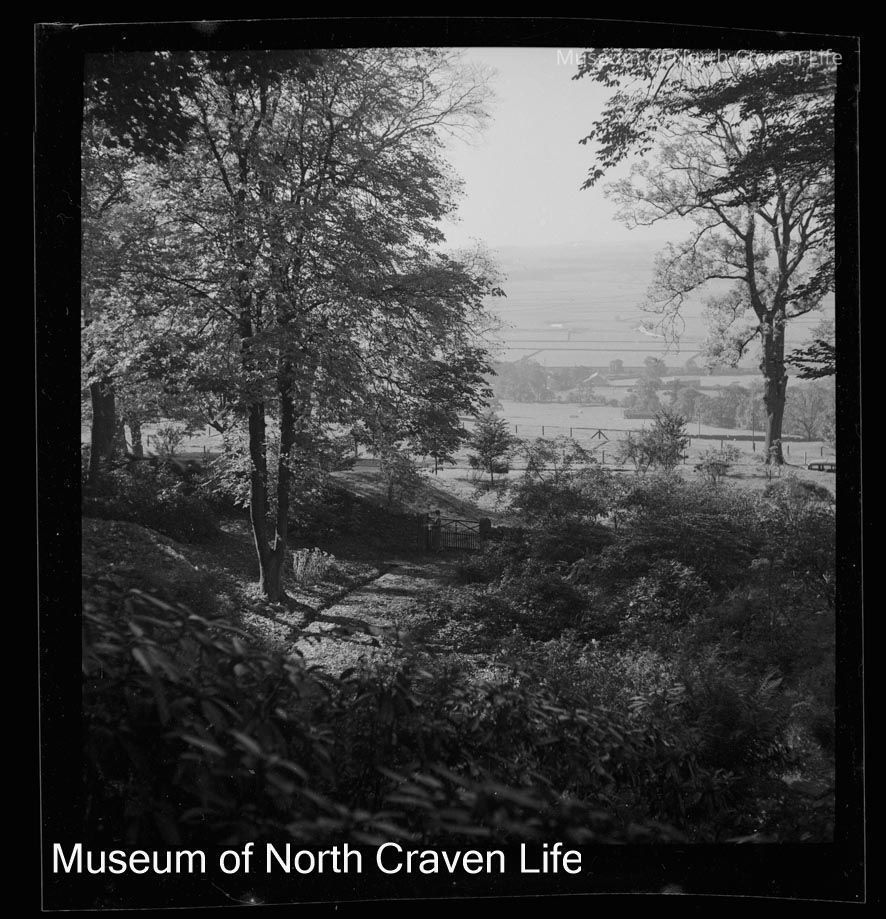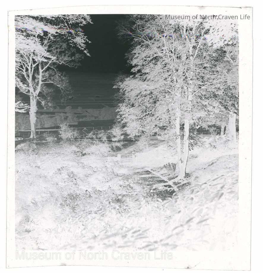 A gelatin silver acetate film negative. A view of a wooded part of the grounds looking out towards open countryCollection