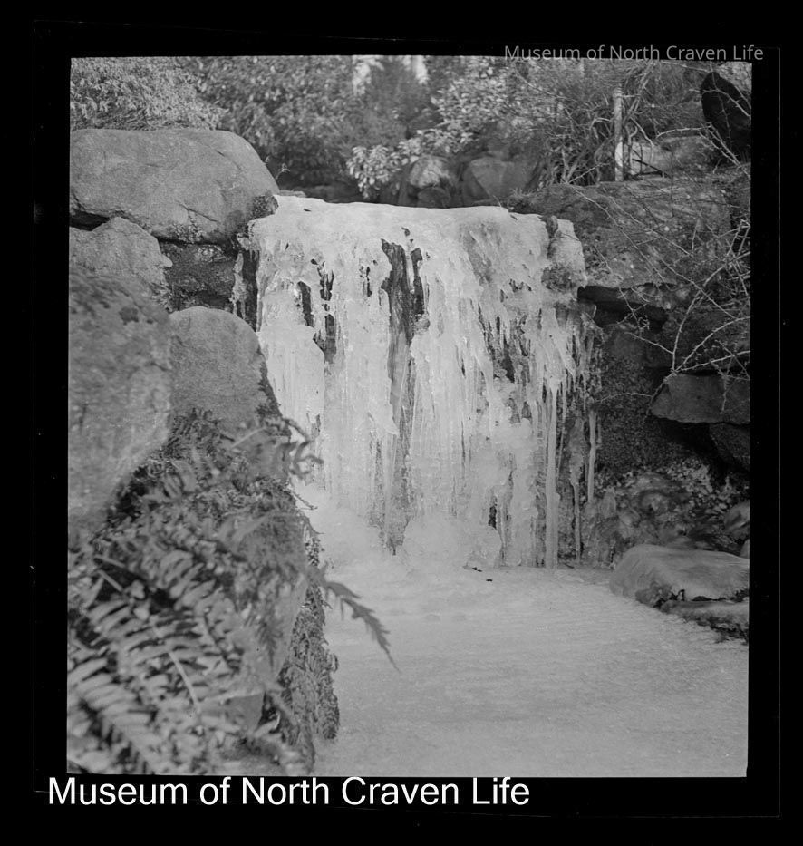 A gelatin silver acetate film negative. A view of a frozen waterfall on the river in the groundsCollection