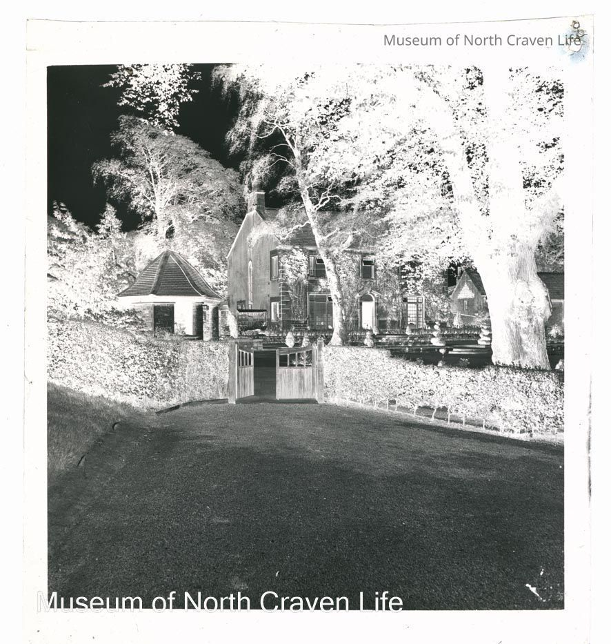 A gelatin silver acetate film negative. A view of the approach to the house from the road with the summerhouse on the right behind the gateCollection