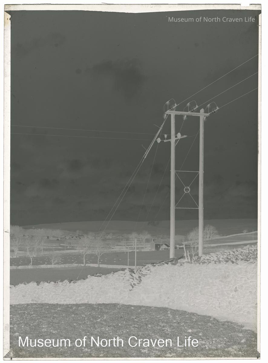 A half plate gelatin silver film negative. A view of an electricity pole of the N.W. Electricity Board (Austwick Ingleton Line)Collection