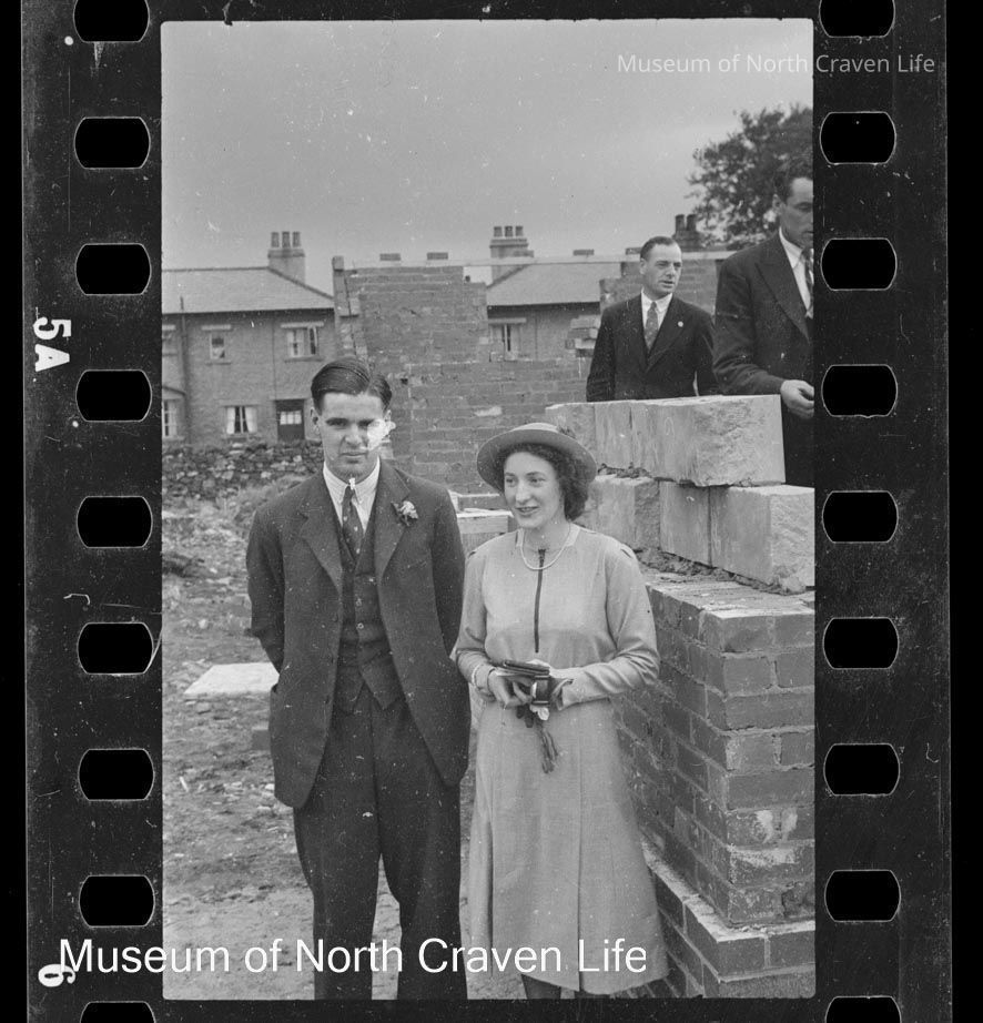 A gelatin silver film negative. A portrait of a man and a woman at the opening of the original St John's Methodist Hall on Mains ViewCollection