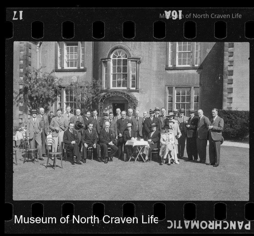 A gelatin silver film negative. A group of people standing and seated in front of Ashfield Hotel, SettleCollection