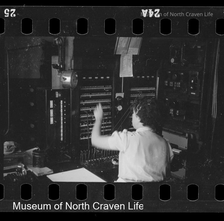 A gelatin silver film negative. A female operator is seated in front of a Telephone Exchange, making telephone connections (2 of 4)Collection