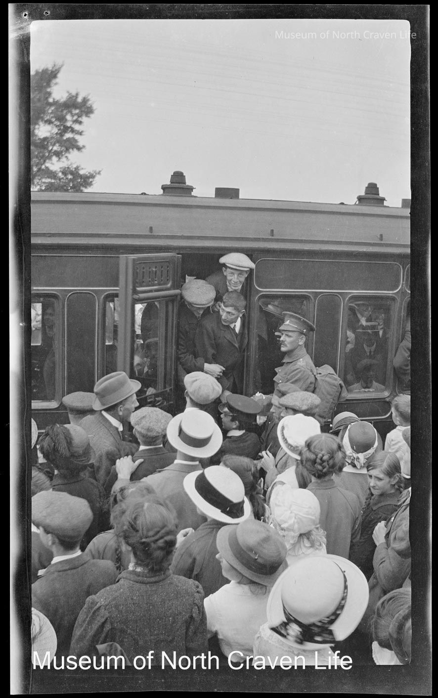 A gelatin silver film negative. A view of Settle Volunteers 1914-1918 at Settle Station (Kitchener's Army 1914)Collection