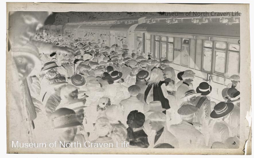 A gelatin silver film negative. A view of Settle Volunteers 1914-1918 at Settle Station (Kitchener's Army 1914)Collection