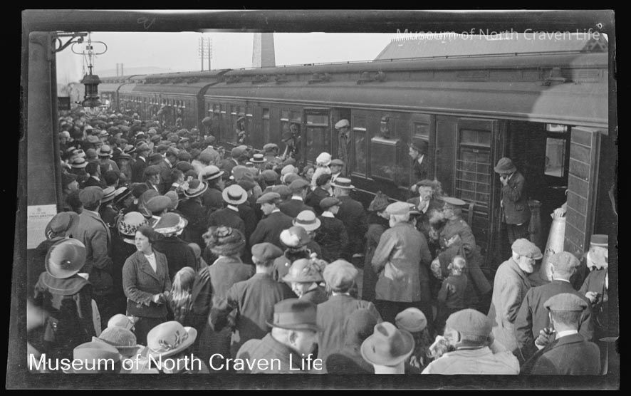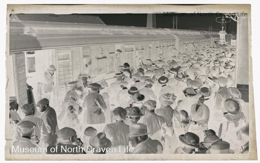 A gelatin silver film negative. A view of Settle Volunteers 1914-1918 at Settle Station (Kitchener's Army 1914)Collection