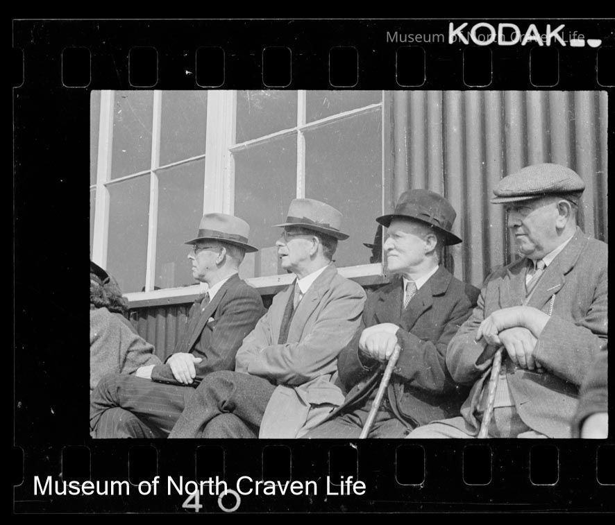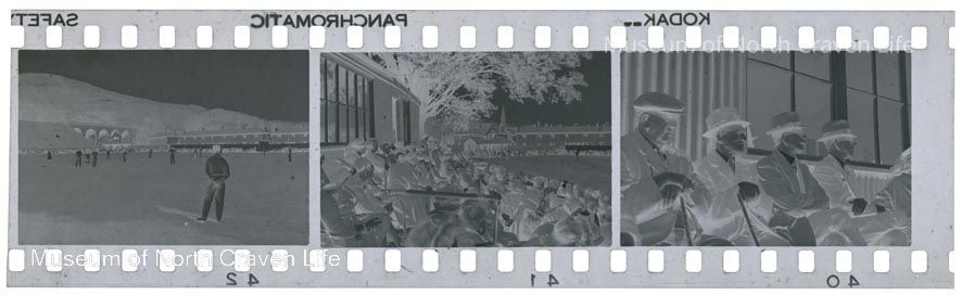 negative, sheet film - Portrait : Men spectating at Settle Cricket Club ?Entry/Object ID