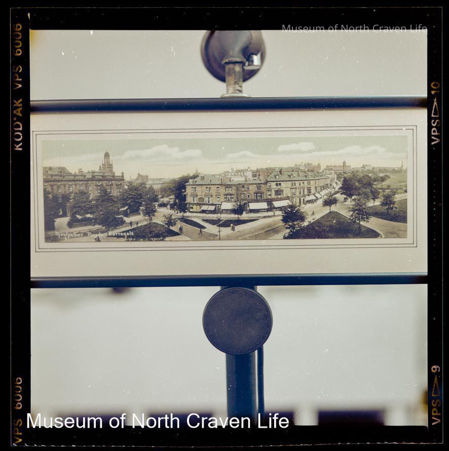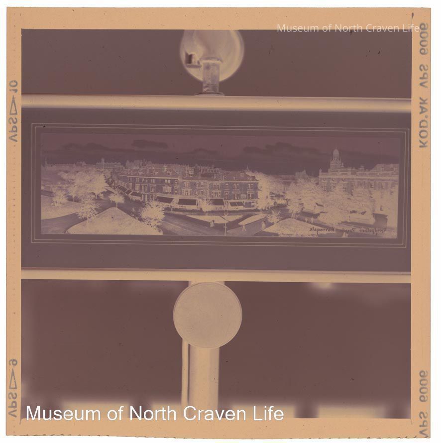 A 2 ¼" colour acetate film negative. A view of a photograph on a metal stand of Montpellier Parade, Harrogate. Copy negative of a framed printCollection